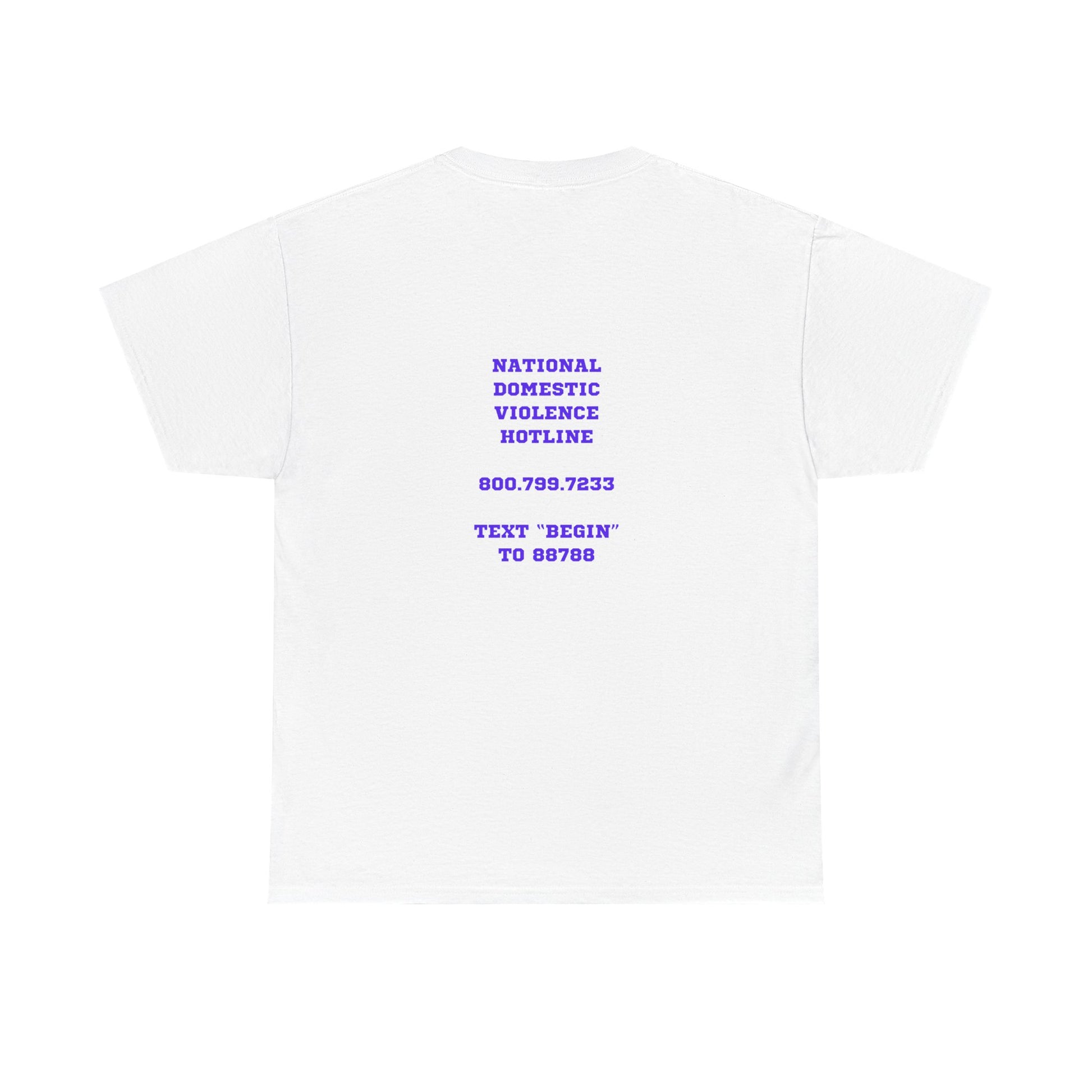 This 100% cotton tee carries a clear, compassionate voice: a front declaration that reads “ABUSE IS ABUSE” and a back panel listing the National Domestic Violence Hotline and a text line. It’s a soft, medium-weight shirt with a classic crew neck and relaxed fit that hangs comfortably and speaks with quiet strength. Wear it to show visible solidarity, start conversations, or offer a discreet resource to someone who might need it. The simple white canvas makes the lilac-toned lettering readable without shouting—thoughtful, steady, and human-centered.