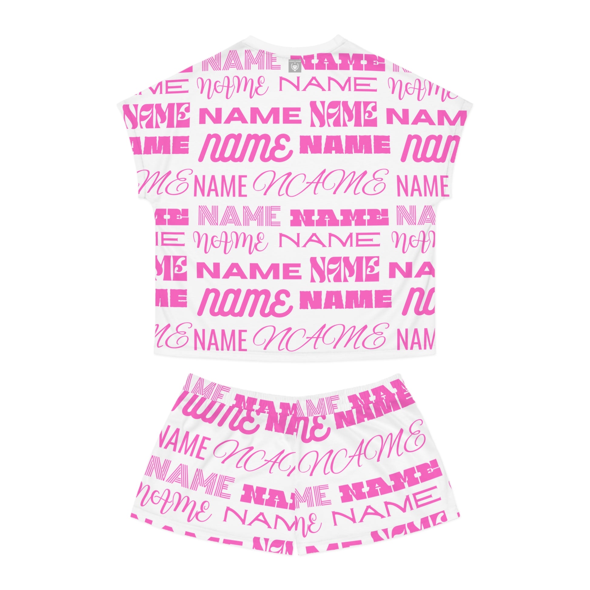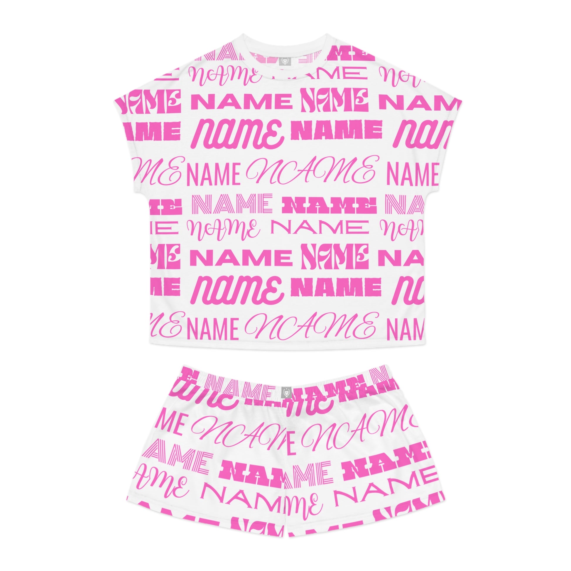 Pink Customizable Name Pattern Short Pajama Set